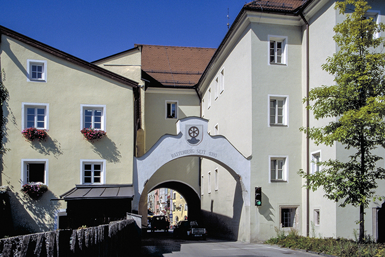 「1393年からラッテンベルク (Rattenberg Seit 1393)」 と書かれた門