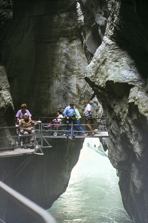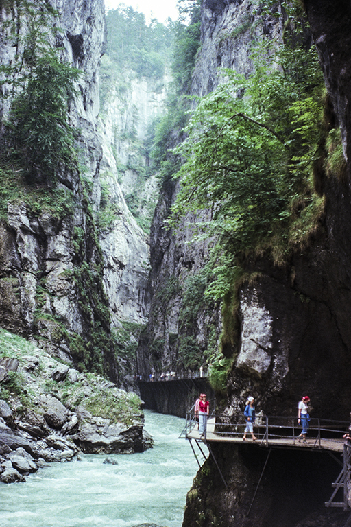 氷河期の終わる1万年ほど前に、溶けた氷河からの激しい流水が石灰岩の障壁を侵食して作った深く狭い割れ目。最も高い断崖は川面から180m屹立し、最も狭い部分の幅は僅か1m。渓谷の長さは1400m。そこに、断崖沿いの通路が作られたのは1889年。それ以来、観光地として多くの人を引き付けてきた。