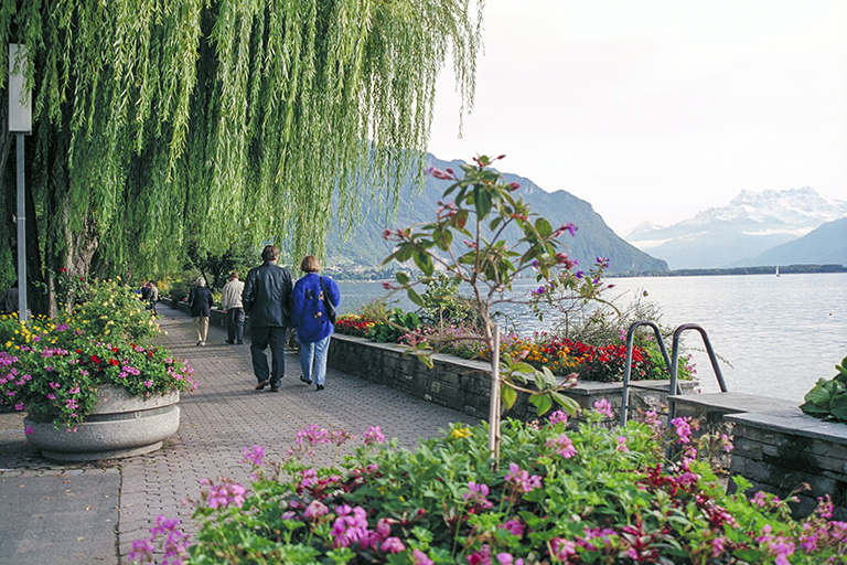 モントルーのシヨン高架橋、シヨン城、湖畔の遊歩道