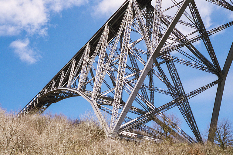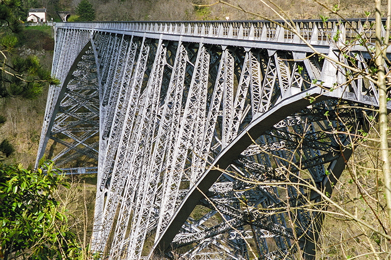 ヴィヨール川の広く深い渓谷を跨ぐ長さ410mの鉄道橋(1902年)。