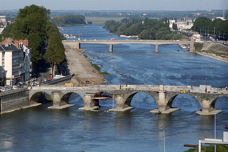 アンジェ(Angers)の中心でメーヌ(Maine)川を渡る長さ105m、8連の石造アーチ、