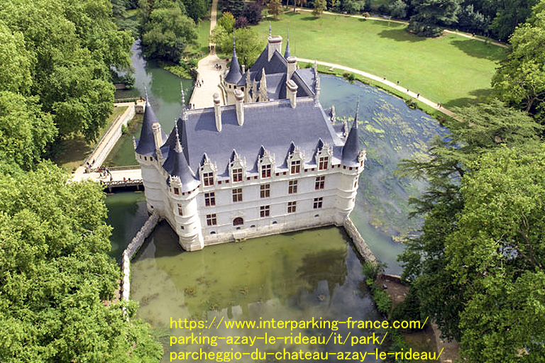 【世界遺産】アゼ=ル=リドー城は、ロワール川の一支流アンドル(Indre)川の小さな中洲の 「最上流の島のように突き出た部分」 に建つ、三方を水に囲まれたL字型の水城。現在の城の原型は1518年からフランス財務省の役人によって作られたが、彼が横領の容疑で逮捕されると、フランソワ1世が未完成の城を没収(1528年)。その後、城は、国王の護衛隊長や第一侍従を経て、ビアンクール侯爵が購入(1791年)。その子孫が破産すると、国が買収し(1905年)、ルネサンス美術の国立美術館となった。この間、所有者が変わる度に、何らかの変更や改善が行われてきたが、最大の貢献者は、城に美しい庭園を作ったビアンクール家と、城に沿って水が流れるように川の支流を広げた1950 年の建築家。撮った写真は1枚だけ。これだけでは、如何に川に囲まれているかが分からないので、ドローン(?)で撮影した空撮映像を2枚目に付ける。