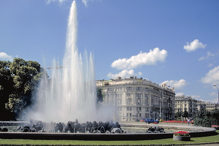 Hochstrahlbrunnen und Jugendstilarchitektur