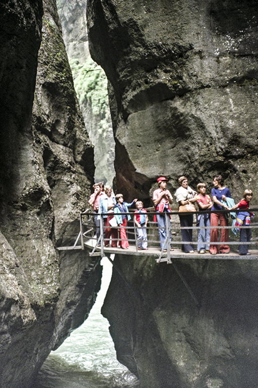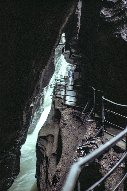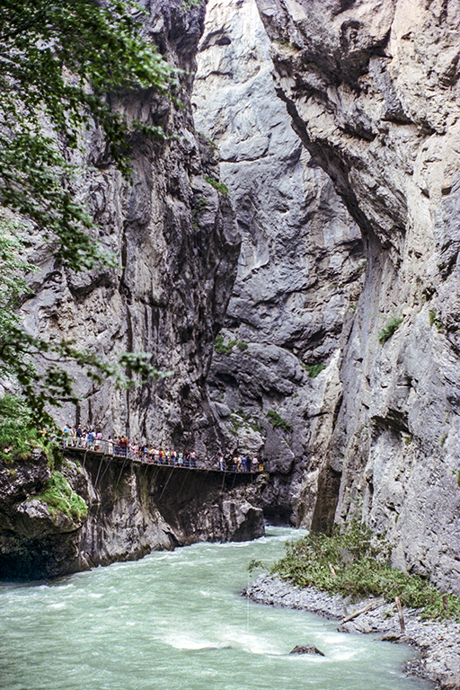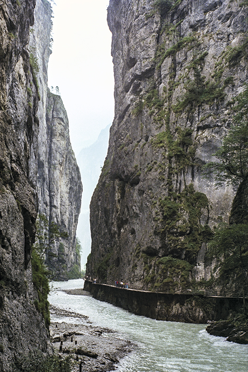 氷河期の終わる1万年ほど前に、溶けた氷河からの激しい流水が石灰岩の障壁を侵食して作った深く狭い割れ目。最も高い断崖は川面から180m屹立し、最も狭い部分の幅は僅か1m。渓谷の長さは1400m。そこに、断崖沿いの通路が作られたのは1889年。それ以来、観光地として多くの人を引き付けてきた。