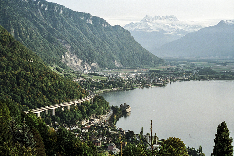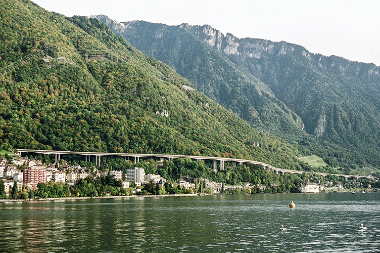 モントルーのシヨン高架橋、シヨン城、湖畔の遊歩道