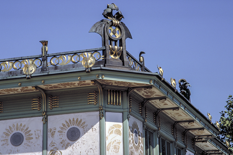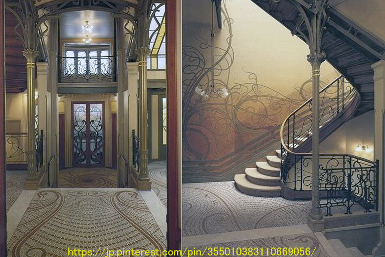アール・ヌーヴォーと同時期にスタートした中で、北から順にブダペストのウドゥン・レフナル(Ödön Lechner、日本ではレヒネルとして知られている)がブダペスト装飾美術館、ブダペストの聖ラディスラウス教会、ブダペスト地質学博物館、ブダペストの郵便貯金銀行などの公的建築を任されている。写真は、市内にあるシペキ・バラージュ・ビラ荘(Sipeki Balázs Béla villája、1905年)の、アール・ヌーヴォー的な部分。ウィーンでは、オット・ワーグナー(Otto Wagner)が、ドーフィーヌ門駅入口の書いたように、市内の鉄道の駅舎すべてを任されるが、写真は、その中のピカ一のカールス広場駅(Stadbahnstation Karlsplatz、1899年)に見られる、ゼツェッショーンの典型である金と詳細な飾り。アール・ヌーヴォーとはかなり違っている。バルセロナではアントニオ・ガウディ(Antonio Gaudí)がいまだに絶賛を浴びている。写真は、カサ・バトリョ(Casa Batlló、1906年)の拡大。最後に、アール・ヌーヴォーは日本にどんな影響を与えたのか? 近代日本では、西洋化を必死になって急いだので、明治期は新古典とネオ・ルネサンスの建物を積極的に建てた。昭和に入ると、アメリカでも盛んに取り入れられたアール・デコは日本の隅々にまで広がるが、アール・ヌーヴォーはほぼゼロに近い。私が全国の都道府県を最低5回は訪れて調査した時も、一番アール・ヌーヴォー的な建物は、意外な所にあった。写真は、松江市の床几山配水池の計量室(1916年)で、四隅の柱のうねり方がアール・ヌーヴォーを思わせる(場所が狭いので全部は写せなかった)。