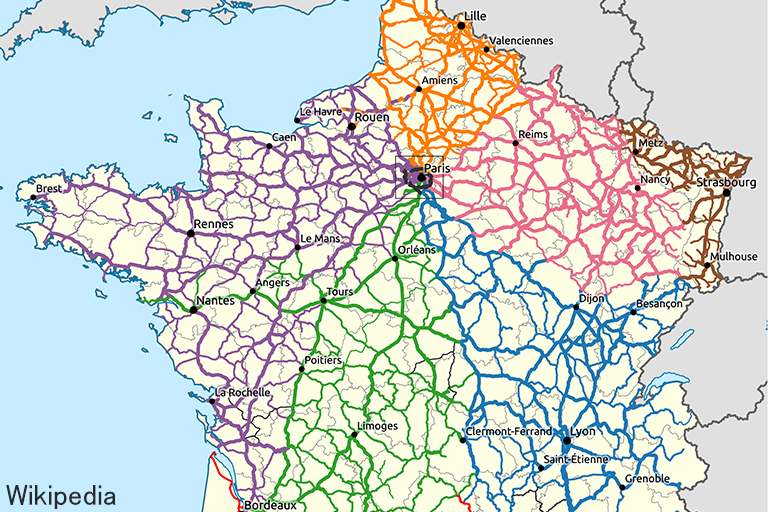 20世紀初頭、東部鉄道会社(Compagnie des chemins de fer de l'Est)はパリを起点する5つの鉄道会社の1つだった。下の図は、1937年の路線図だが、ピンクが東部鉄道会社、反時計回りに、オレンジが北部鉄道会社、パープルが国立鉄道管理局、グリーンがパリ・オルレアン鉄道会社、ブルーがパリ・リヨン・地中海鉄道会社で、それぞれのターミナル駅は、東駅、北駅、サンラザール駅とモンパルナス駅、オーステルリッツ駅、リヨン駅だった。