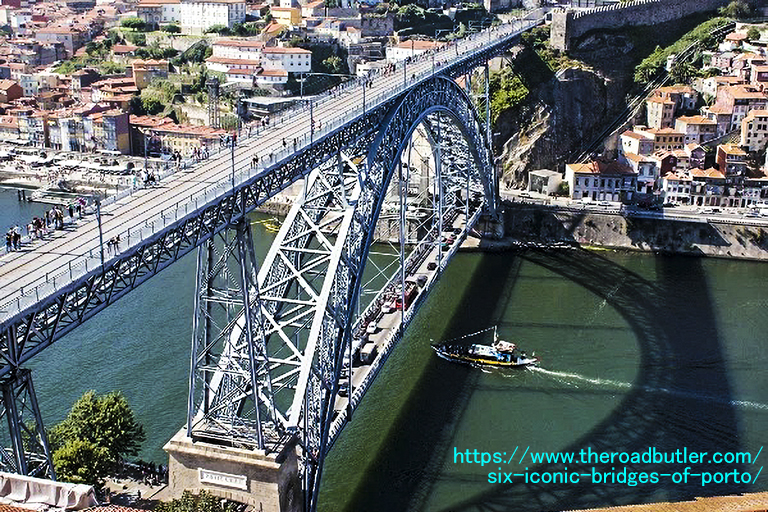 をフランス国内に作る。私の撮った4枚目と、3枚目の写真を比べてみると、如何によく似ているかが分かる(エッフェル社は、このタイプの橋をヨーロッパ中に架けた)。5枚目の写真は、反対側から撮ったもの。ガラビ鉄道橋は、その後フランスの誇りとなり、ユーロに移行する前の最後の200フラン札に、エッフェルの顔と一緒にデザインされたほどであった。一方、エッフェルにより黙殺されたセーリグ技師は、ガラビ鉄道橋の1年後に、ガラビ鉄道橋を上回るスパン172.5mの橋を、同じポルトの街に架けた。6枚目に、5枚目と似た方向からのドン・ルイーシュ一世(Dom Luís I)橋の写真を掲載する。この橋が独創的なのは、ポルトの街が川沿いにあるのを考慮して、上は鉄道橋、下は道路橋と2階建て構造にした点。ワンパターンでない分、セーリグ技師の方が優れている。因みに、エッフェル塔(1889年)の施工を請け負ったのはエッフェル社だが、デザインや技術担当はエッフェルではない。彼は技術者なのか、技術者上がりの高慢な経営者なのか? 何でも自分の成果にしてしまうような…