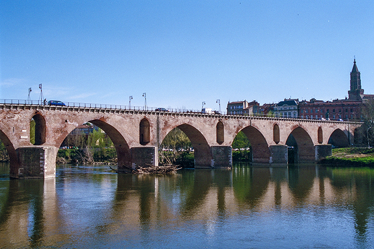 トゥールーズ伯アルフォンス・ジュルダン(Alphonse Jourdain)によって、タルン(Tarn)川沿いにモントーバンの町が作られた時(1144年)、彼は戦略的な理由から、設立憲章に橋の架設を明記した。しかし、できたばかりの町にそのような資金はなく、渡し船が使われ続けた。1303年に国王フィリップ4 世がトゥールーズを訪れた時、トゥールーズの領事は支援を要請し、国王は橋の建設資金を調達するための勅許を与え、町を通過するすべての “よそ者” に税を課すことを許可した。資金が集まり、1311年に橋の工事は始まるが、繰り返された資金の不正流用で工事は進まず、完成は1335年とかなり遅れた。こうして出来た