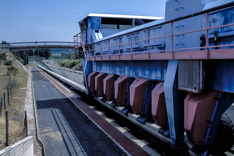 No.20のモンテシュのところで、現役で活躍中のモンテシュの傾斜水路(1974年)を紹介した。フォンセラーヌ閘門の通過に時間がかかることから、モンテシュでの成功を受けて、1983年に完成したのが、