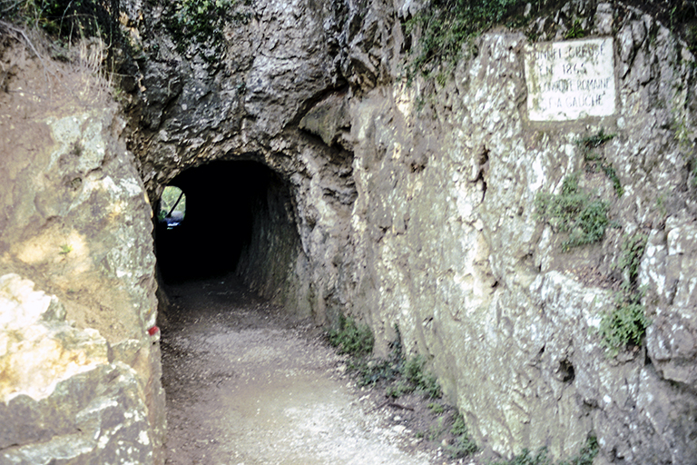 。ユゼス(Uzès)近くのウール(Eure)川の水源から古代ローマ植民地ネマウスス(Nemausus、現在のニーム)に水を供給するため、AD40~50年代に建設された約50kmの水道橋(平野部は単なる高架橋)の中で、ガルドン(Gardon)川を跨ぐ部分に架けられた巨大な橋。現存する全長は275m(当初は360m)。高さは48.77mにも達する。計2層の強固な石造アーチで橋をガルドン川の氾濫から守り(川の真上のアーチだけ、スパン24.52mと広くしてあり、その他は19.20mで統一されている)、その上に、水道用の水路を通すための連続小アーチ(35連、当初は47連)の第3層が乗っている。第3層の水路の内部は、高さ1.80m、幅1.20m、勾配0.04%、平均流量は約460ℓ/秒)。全長50.02 kmの始点と終点の高さの差はわずか12.6m、平均勾配は1km あたり24.8cm。水が水源からニームに届くまで約1日かかったとされる。構造的には、強固な石造アーチの部分は巨石を正確に切り出して空石積みにしたもの。水路の部分だけ、水が漏れないようモルタルで固めてある。ガール橋が、6世紀初頭には使われなくなったのに、完璧に近い姿を残しているのは、中世には道路橋として使われたためと(ガール橋以外の残りの49.9kmがほとんどなくなったのは、再利用方法がないから)、その後は、ガール橋の価値を歴代の指導者が認めて保護しようとしたから。1枚目の写真はほぼ正面の川岸から6月27日に、2枚目の写真は橋と同じくらいの高さの地点から8年半後の3月21日に、3枚目の写真は橋に真下近くからさらに4年半後の8月14日に撮ったもの。4枚目の写真は、橋が終わった先の岩に残っている水路のトンネル。