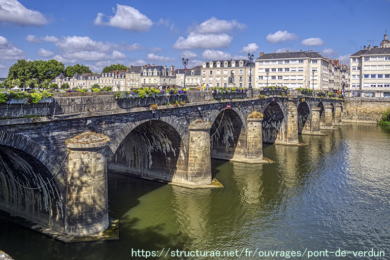 アンジェ(Angers)の中心でメーヌ(Maine)川を渡る長さ105m、8連の石造アーチ、