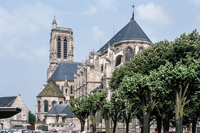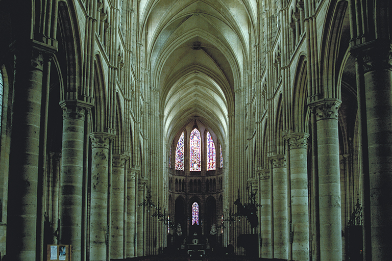 サン=ジャン=デ=ヴィーニュ旧修道院。大聖堂は1176 年から建設を始め、完成までに3世紀を要し、1479年にスワソン司教ジャン・ミレ(Jean Milet)が奉献した。1つしかない塔の高さは66m。修道院の教会は、1215~30年のわずか15年で身廊、翼廊、内陣が完成するが、奉献は、1478年になってから(同じ司教ジャン・ミレ)。この修道院の教会、ファサードの2つある塔のうち、1488~95年に出来た大塔は高さ80m、1516~20年に出来た小塔は高さ70m。ファサードの立派さは、大聖堂より修道院の教会の方がよほど立派だ。この2つの教会は、1567~68年にユグノー軍がスワソンを占領した際、損傷を受ける。また、フランス革命の間、大聖堂は2回閉鎖(1回目1793年、2回目1796年)され、1799年に再開し、受けた損傷を、ジャン=クロード・ルブラン・ド・ボーリュー(Jean-Claude Leblanc de Beaulieu)司教が修復を指示する。修道院では、修道士72人が追い出され、家具が売却される。この記述からは、大した損傷は受けていないように思われるが、1809年、大聖堂を快く修復した司教が、今度は、修道院の改修費用が高すぎるという理由で、ソワソン市や数人の政治家からの強い抗議にもかかわらず、ファサードと2つの塔を除き、教会を破壊するよう命じた。石工が修道院を買い、身廊を解体して石を売った。どうして、2つの教会で正反対の決断が、同じ司教によって下されたのか? 恐らく、大聖堂は司教の直接の管轄下にあるので大事にするが、「自分に関係のない修道院なんかに教区の大事なお金なんかやるか」という思いがあったに違いない。この司教は、ナポレオンをフランスの皇帝とは認めず、1815年にロンドンに亡命したような人物なので、こうした差別的な行為を平気でやったのであろう。ただ、現在の資料もズルい。それは、ジャン=クロード・ルブラン・ド・ボーリューの経歴を見ても、大聖堂の修復については触れていても、修道院の教会解体については口を閉ざしている。執筆したキリスト教の関係者も、恥を隠そうと思ったに違いない。下の2枚の写真は、その履歴を調べたら、もうどうでもよくなった大聖堂。1枚目は、鐘楼は1基しかなく、内陣側からの外観も、どこにでもあるゴシック様式の教会。2枚目の身廊も、もう見飽きてしまった、どこにでもある、ステンドグラスの多くを欠いた魅力なき光景。