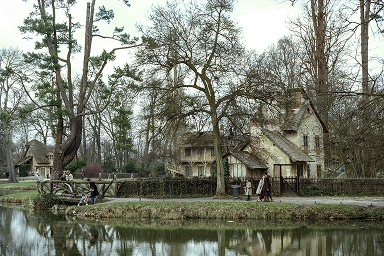 【世界遺産】小トリアノンは、大トリアノンが嫌いなルイ15世によって1762~68年に作られたが、そのことに意味はない。重要なのは、ルイ16世が若き王妃マリー・アントワネットにプチ・トリアノンを与えたこと。彼女は、1783~86年にかけて、建築家リシャー・ミーク(Richard Mique)に、「王妃の小さな村落(Hameau de la Reine)」を作らせた。まるで絵画のような小さな村には、楽しむために作られた王妃の家(晩餐用)とビリヤードの家だけでなく、乳製品製造場、製粉所、鳩小屋、納屋、王妃の私室、監視所なども作られ実際に機能していた。一見すると自然主義的なイギリス式の庭園にも見えるが、発想は全く異なるもので、典型的なイギリス式自然風景園に相応しいものは、村落から離れた愛の神殿(Temple de l’Amour)のみ。1枚目の航空写真は配置図。黄色の番号は農家としての機能しか持たない建物、オレンジの番号は王妃の生活に関係する建物。