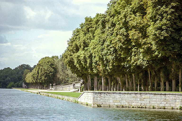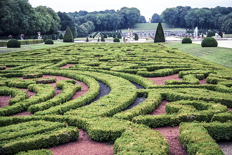 これを作り上げた天才的造園家は、アンドレ・ル・ノートル(André le Nôtre)。城館を担当した建築家のルイ・ル・ヴォー(Louis le Vau)、館内の美術を担当した画家シャルル・ル・ブラン(Charles le Brun)の3人。財務総監(Surintendant des Finances、1653~61年)のニコラ・フーケ(Nicolas Fouquet、1615~80年)のために豪華な城と庭園を作った(1656~61年)。そして、歴史上有名な1661年8月17日。フーケ(46歳)はルイ14世(22歳)と約600名の延臣と高級娼婦を招き、城で豪勢な祝賀会を開いた。国王を遥かに凌ぐ豊富な資金力に激怒した若きルイは、9月5日にフーケを逮捕させ、公金横領と不敬罪で裁判にかけた。1664年12月21日の判決で、フーケはピネロロ要塞での終身抑留となった(1680年死亡)。祝賀会での様子は、19世紀の小説家アレクサンドル・デュマの『ブラジュロンヌ子爵』の一分冊、『鉄仮面』の中で詳細に描かれている。それ以後、ルイ14世の造園家となったル・ノートルは、ヴェルサイユ宮殿の庭園、ルーブル宮の前のチュイルリー(Tuileries)庭園の整備、フーケを敵視していたコルベールのソー(Sceaux)城の庭園などに携わる。